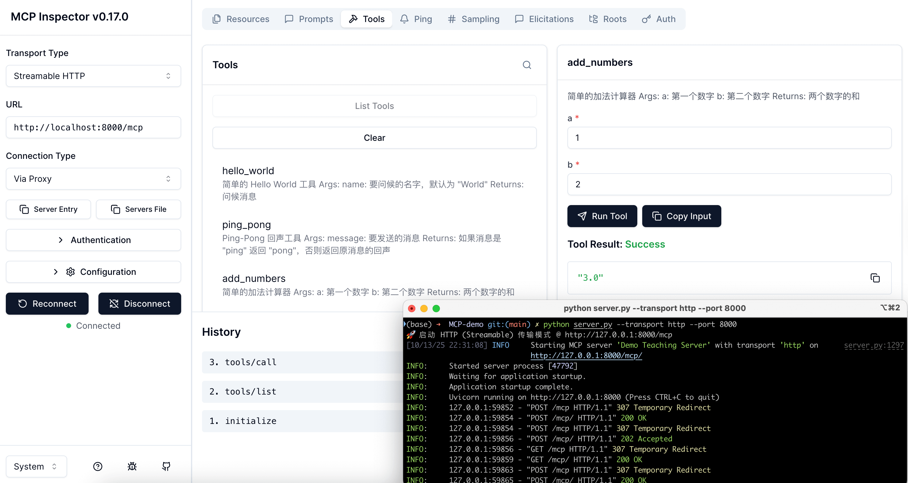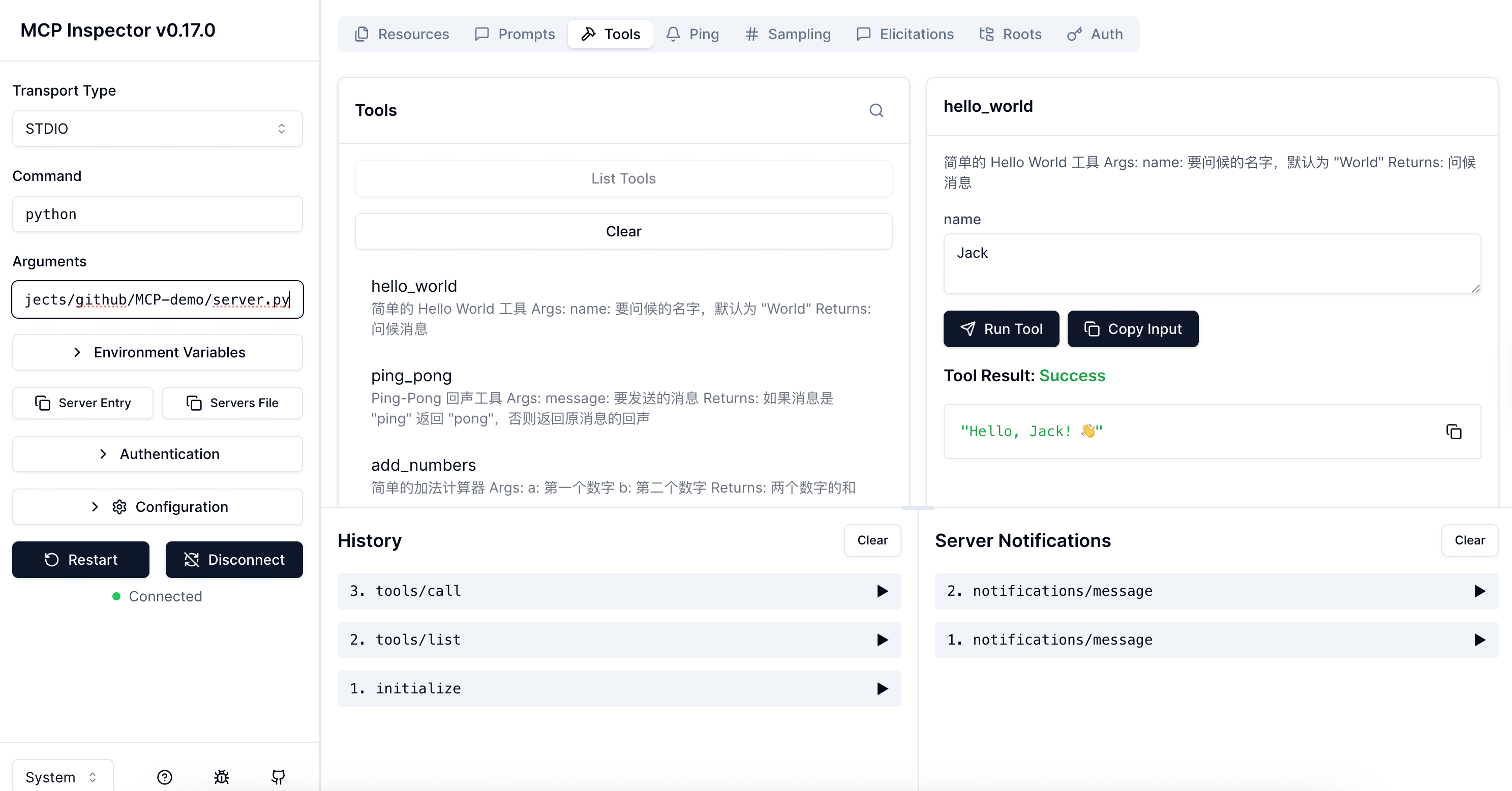 - Server:MCP服务端,负责实际的逻辑,也可能调用外部的服务、命令等