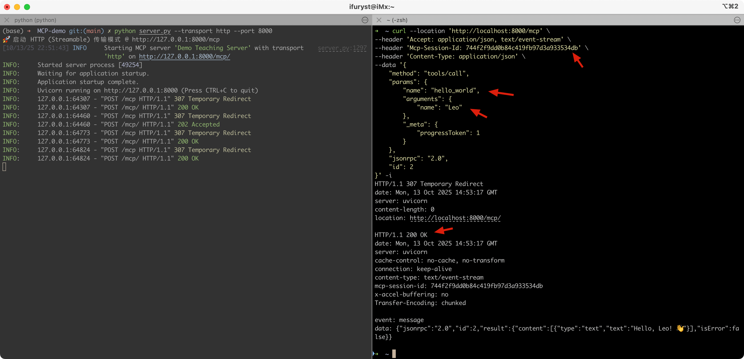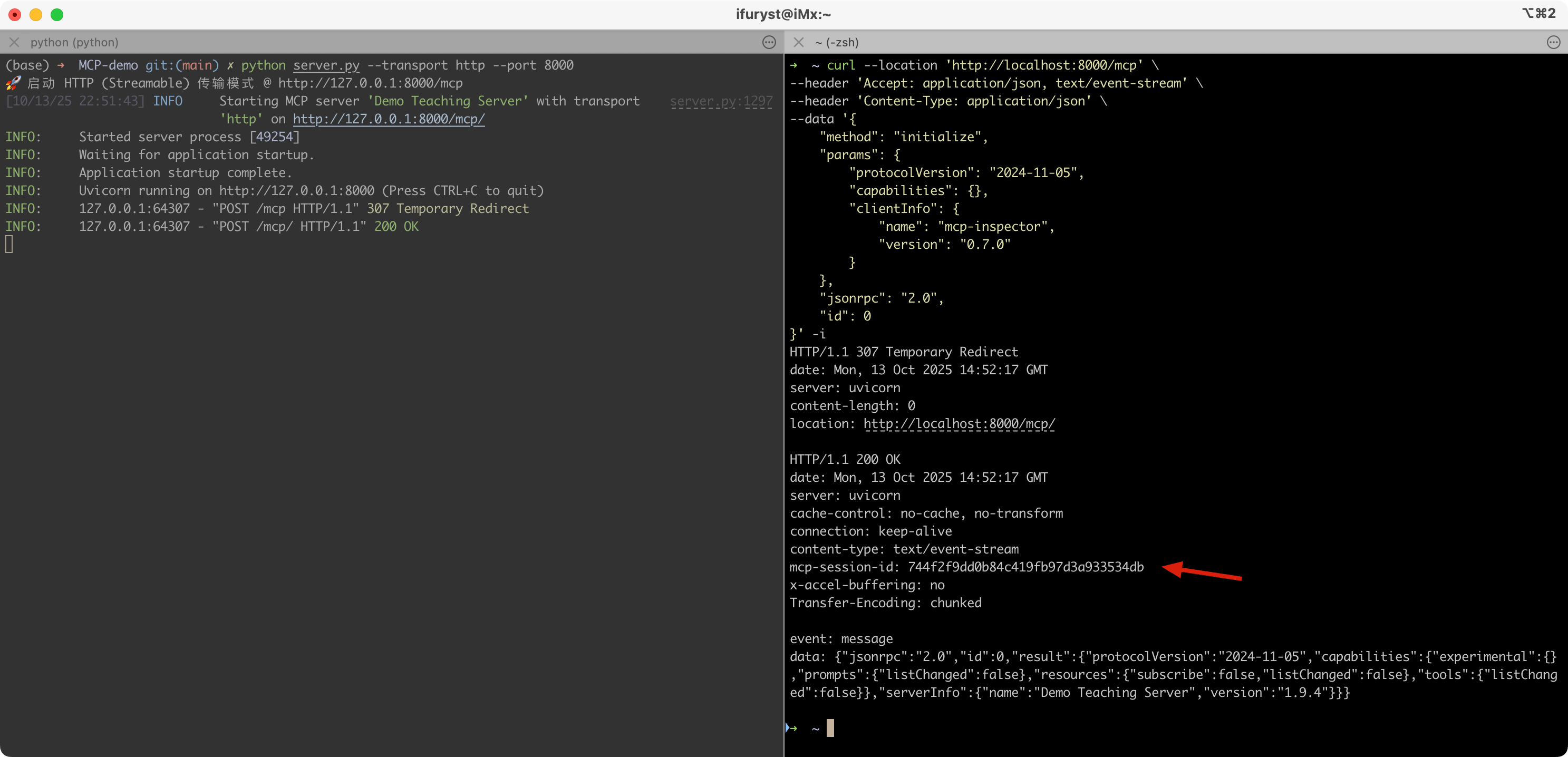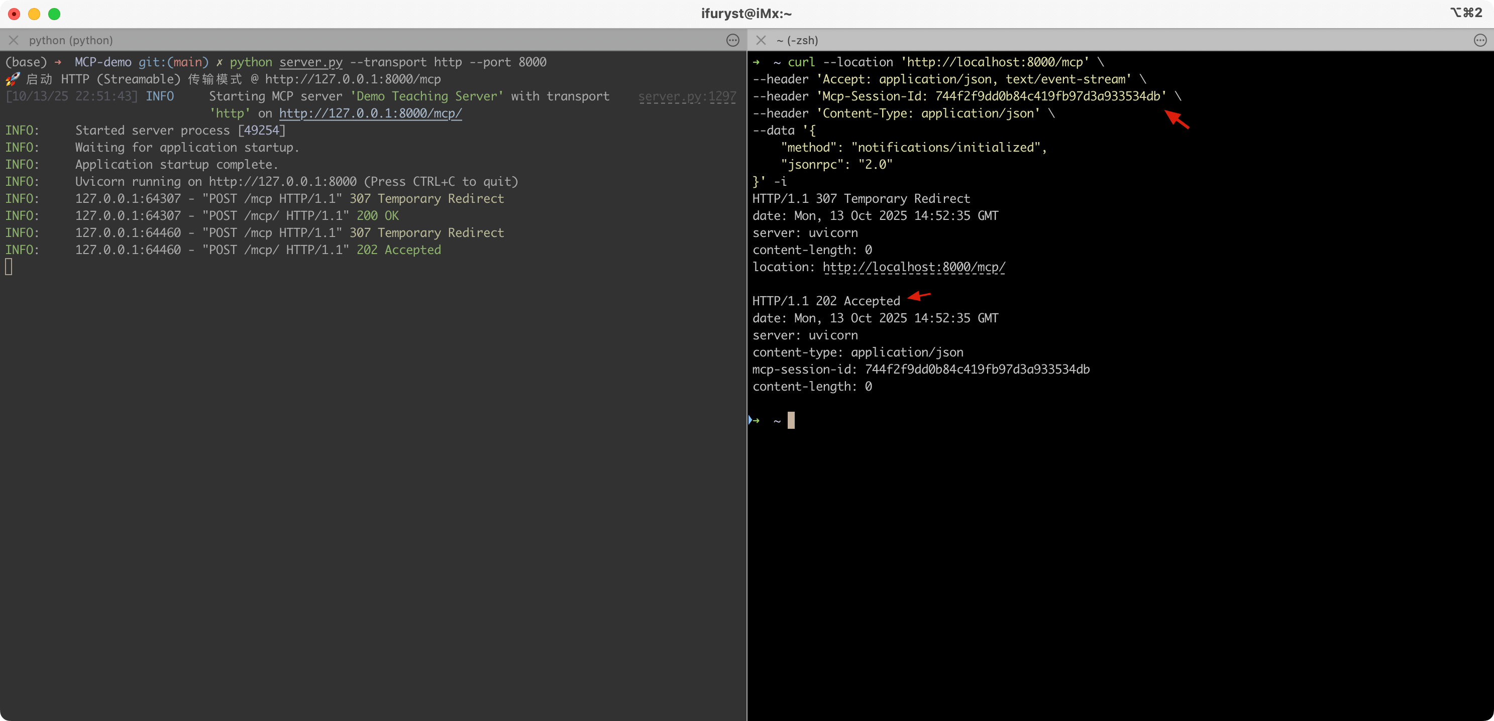 这边我们通过几个连续的curl请求来展示一下Streamable HTTP的实际流程: