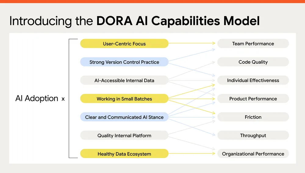 - 小批量工作:小批量开发是DORA的长期原则,小批量迭代在AI环境下更能放大对产品的正向影响,并降低团队摩擦