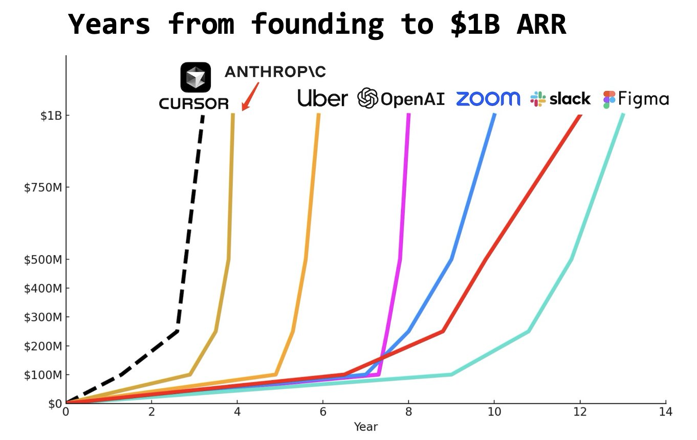- Cursor用2年达到了10亿美元的ARR,很猛