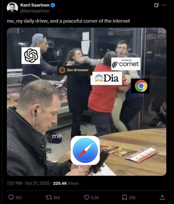 随着OpenAI和微软在这周进入AI浏览器大战,现在的战局已经是: