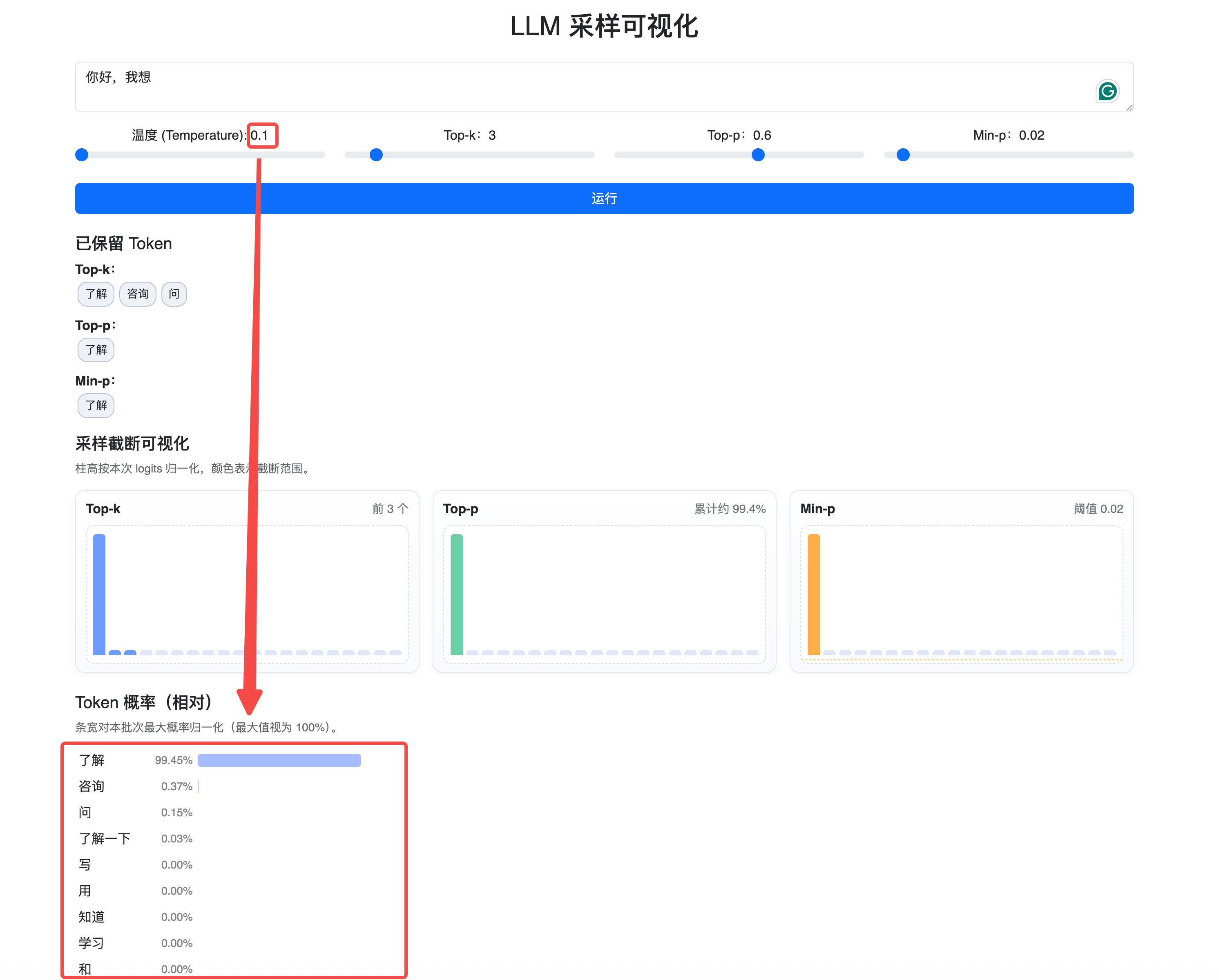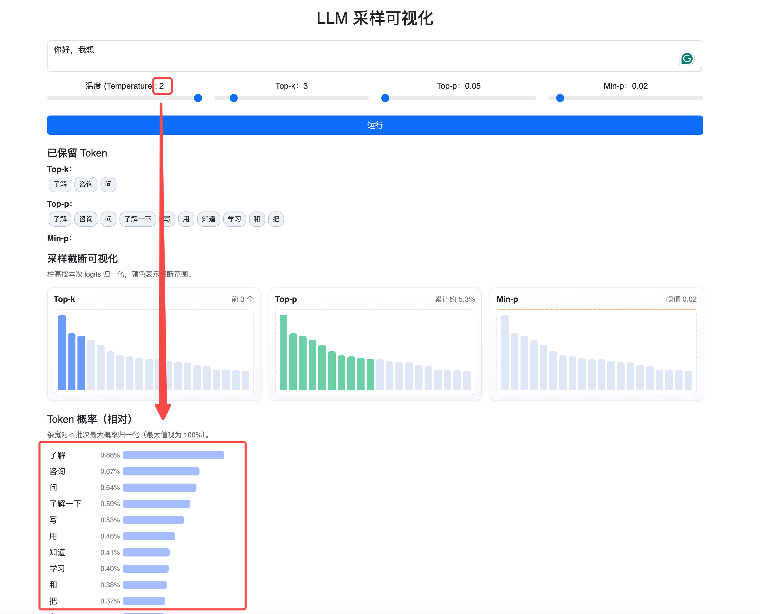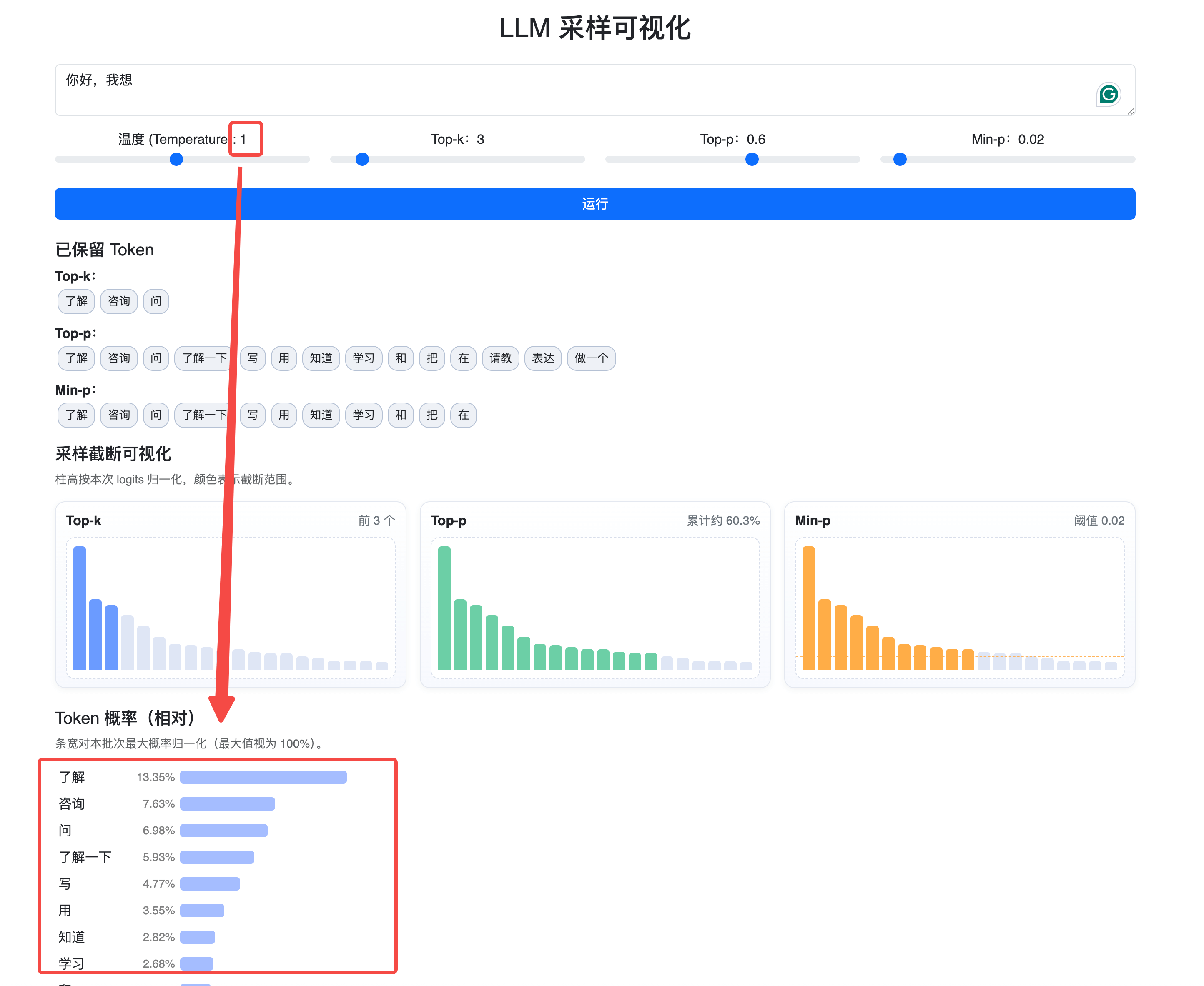 在调用大模型的时候,你可以会看到过temperature,top-k甚至是top-p,min-p这些参数,它们的含义是什么呢?