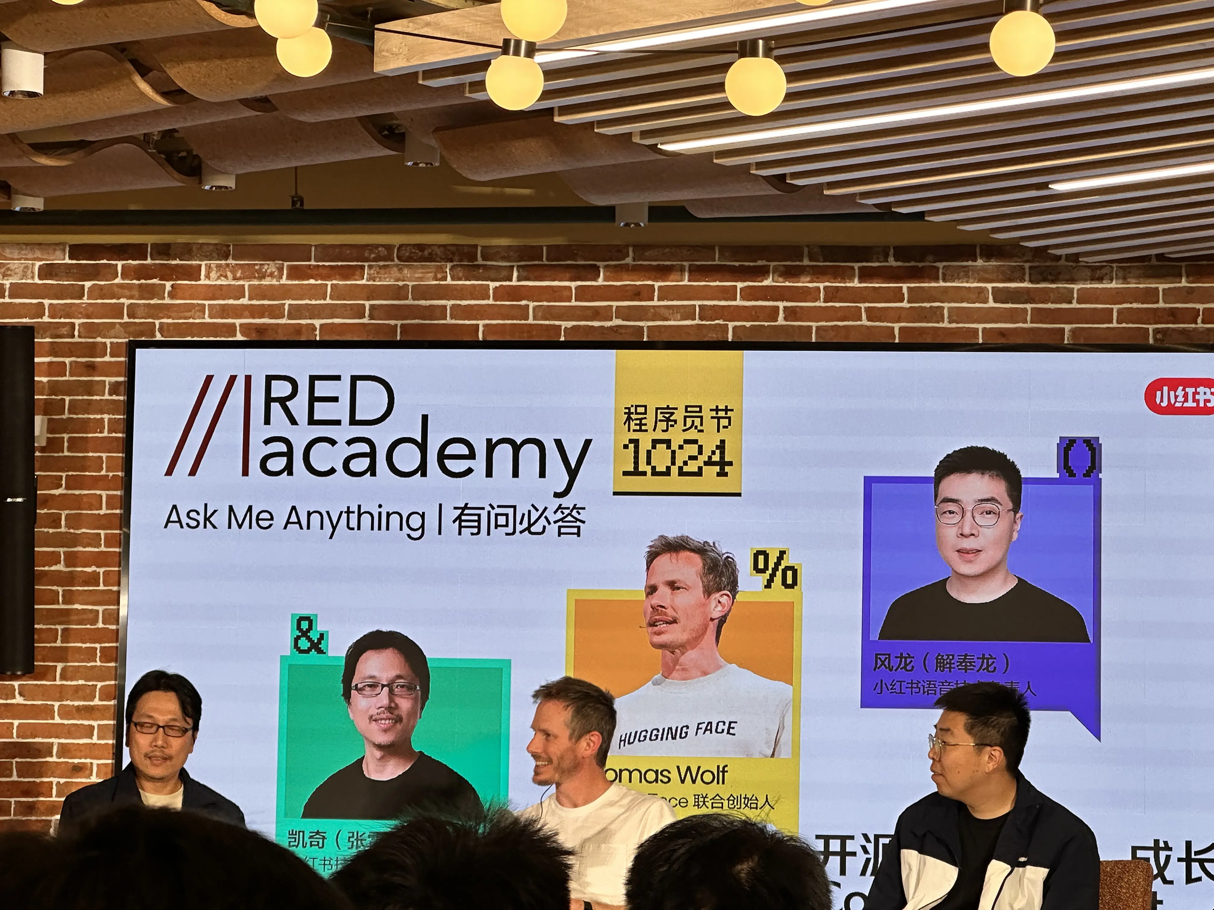 废话了那么多,以时间线推进的,现在聊一下我记下来的几点比较有趣的东西: 1️⃣ 开源&闭源模型的话题,毕竟hf也是做模型开源社区的,不难理解有这个问题。开源和闭源的差距在拉近。另外现在模型的开源和原来以GitHub为主的代码开源不太一样,现在的开源主要是针对模型的权重(weights),大家也没办法基于这个权重去一起贡献和改变权重,只能说基于权重再去做类似微调、强化学习等,大家更关注的是技术报告,里面披露的训练的方法、思路和细节 2️⃣ 小红书两位老师也有表示小红书也做了一些模型的开源,包括FireRed、dots-ocr等,一个角度:模型的效果仅靠benchmark来评估效果不太够,无法代表实际的应用效果,因此开源的好处之一是可以收到来自社区的实际应用反馈,有助于从更广泛的角度去看模型的效果,为后续的训练和调优指明方向。另外值得一提的是dots-ocr的效果确实非常好,很多adoption 3️⃣ 关于语音模型,训练数据远远少于文本数据,虽然今年一些头部公司的语音模型的训练数据规模已经达到了几千万、上亿小时的级别,但是与文本数据相比仍然有很大的差距。所以语音模型还有很大的进步空间,其中很重要的一个点在于数据不足,还能继续走scaling-law的路。现在小红书也在内测语音评论的功能,小红书也会基于语音模型去识别说话的内容、预期、情感等内容。在这次活动之前我不知道小红书有这个功能在内测,结合今天的分享内容,我腹黑一下,小红书借助这个功能可以有更多的语音数据做训练,功能本身也提供了一个大型的Evaluation现场,善加利用可以有一定程度的数据飞轮效果。记忆犹新,Thomas说了一句你们非常幸运有这么多的数据(指小红书这个平台这么多的数据),总感觉他说这句话适合的语气和神情很有内味(笑 4️⃣ 我刚好提问了风龙老师一个问题,现在一些场景比如同声传译的,需要将语音转文本(stt),文本转文本翻译(ttt),文本转语音(tts),怎么看待sts这种端到端的模型呢?风龙老师做了一个挺详细的解析和他的见解,我觉得讲的很好。关键的点就是不稳定性很高,也就是现在的流程稳定性很高,相对更可靠,哪个环节有问题都能比较明确的知道,但是如果端到端的话,出问题了有可能不知道怎么解决,这种对于企业生产级别的服务,是完全不可接受的,基本上方案也很难能通过。我理解可能还是端到端模型的不可解释性太高,以及目前这个模型的发展还没有到位。我记得amazon好像就有这块的探索。风龙老师也讲了这个是未来的一个方向,也建议还在学校的同学可以考虑做这个方向的研究。make sense 5️⃣ 关于大模型没有人情味的问题。凯奇老师说现在哪怕用户的已经很生气了,大模型不会选择去安抚一下用户情绪,而是继续解决问题,这就是现状。Thomas的一个观点也不错,这是因为现在的benchmark是基于Error Rates(错误率)来建立的,也就是基准测试都是评估模型做一个事情的成功或失败这种二元评估,结果必然就是模型的目的是解决问题。我的想法也是类似这样的,我觉得这个其实也能被改变的,我们可以用一些更有活人感的数据集来做instruct,这样出来的模型会更有活人感,不够根源还是在于现状追求活人感的商业价值没那么高,等到商业价值上去了,模型厂自然会做的。 6️⃣ 关于基座模型增速放缓问题。现在其实大家还是在不同的方向上做探索,后阶段训练,RL,更高质量的数据,多模态,还是不同于的Transformer的架构,新范式等等,这些都有可能在未来出现新的突破,需要让子弹再飞一会。话说回来,这几个月也能明显感觉到模型厂已经开始上升到深耕应用层了,工程化或者说Applied AI可以在模型之外给模型公司带来第二增长曲线,并且很多实际的商业价值会在这里得到体现,这也是今年Agent市场火热的一个重要原因