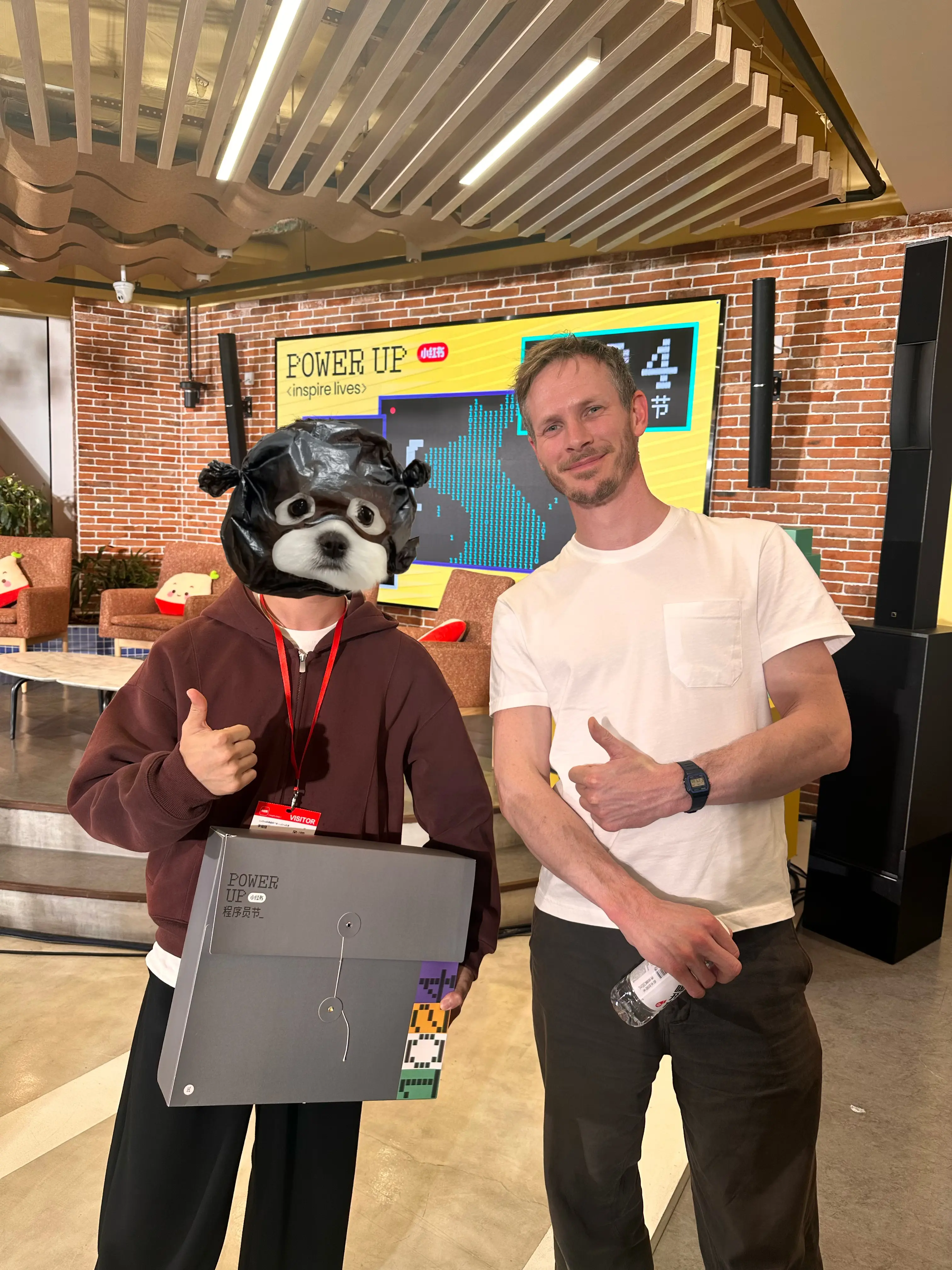 大概记得这么些内容了,最后领了一个1024大礼包,还有一个后面会安排寄送的礼包,还和Thomas合了个影,还加了风龙老师的vx,风龙老师说:要是你搞语音模型,马上就挖你了(DOGE(题外话,有在学校读书研究这个方向的同学可以考虑去找风龙老师,有实习或工作机会。领大礼包的时候还和组织活动的一位同学聊了一下,上次我从厦门坐飞机特地去北京参加Google Mingling的时候也是她,很脸熟了,聊了一下。人生的轨迹就是这么神奇,之前特地去参加活动,现在来上海发展了,又再次在另一个城市的另一个活动遇见。