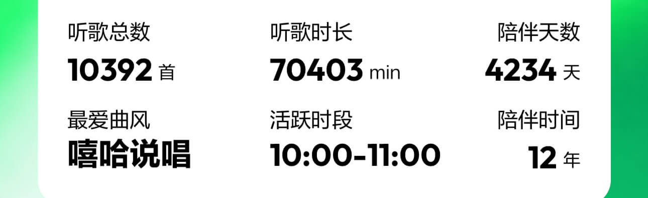 音乐真的是生活中必不可少的东西,没有音乐的一天,是没有灵魂的。想起之前网易云的年度报告里写了我再12年4234天里听了70403分钟的歌